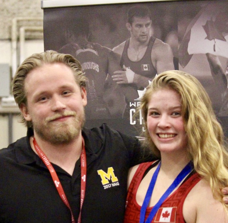 Keystone Wrestling Club is a Winnipeg based club founded in 2017 by Jordan and his wife, Leah. Jordan is originally from Calgary, Alberta where he wrestled for fifteen years, and has now been coaching for three years. As a kid, he grew up playing soccer and football but decided to take a different path and compete in a sport no one else in his family did, wrestling. He was a part of the University of Calgary Dinos program, then moved to Winnipeg with his wife for her job. He got involved with wrestling again as an assistant coach in both male and female programs, while Leah focused on training and competing. Unfortunately, this program got cut, but it opened up the opportunity for Jordan and Leah to establish their own wrestling club.