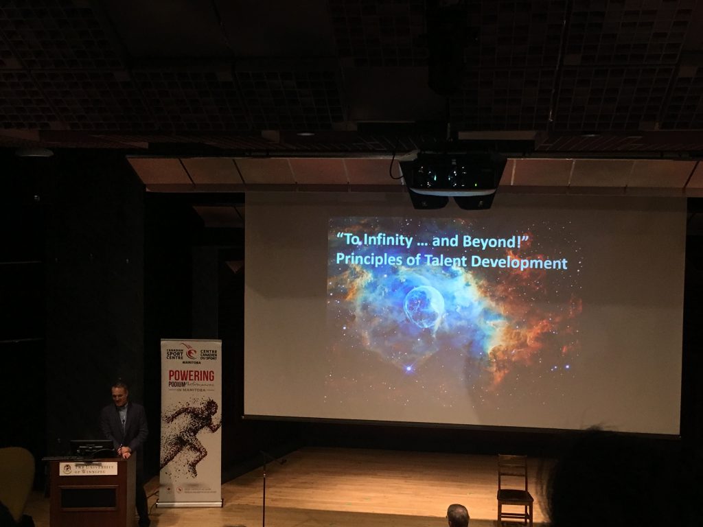 Dr. Wade Gilbert joined Manitobans for the Cal Botterill Lecture on Thursday evening, delivering his presentation To Infinity and Beyond! Principles of Talent Development. The lecture, held at the University of Winnipeg, marked the 11th year of the Cal Botterill Lecture Series.